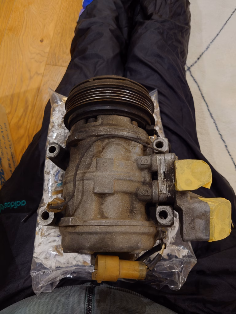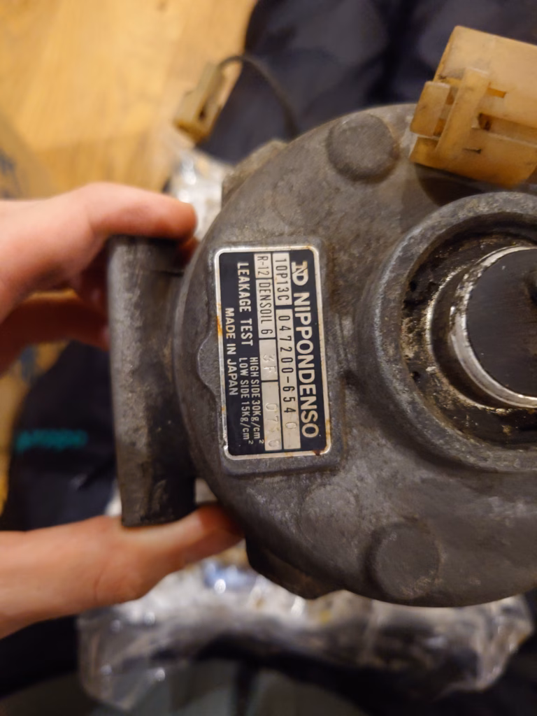 The JDM AE86 came with two different AC suppliers: DENSO and SANDEN. Most likely, DENSO ACs came from factory, while the SANDEN ones were aftermarket. Both of these ACs are completely different, and parts are not interchangeable.